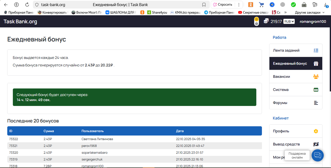 Я работаю здесь уже несколько месяцев и могу сказать одно — если ищете стабильный, проверенный способ подработки, то Task-Bank.org — это именно тот вариант, который стоит попробовать.